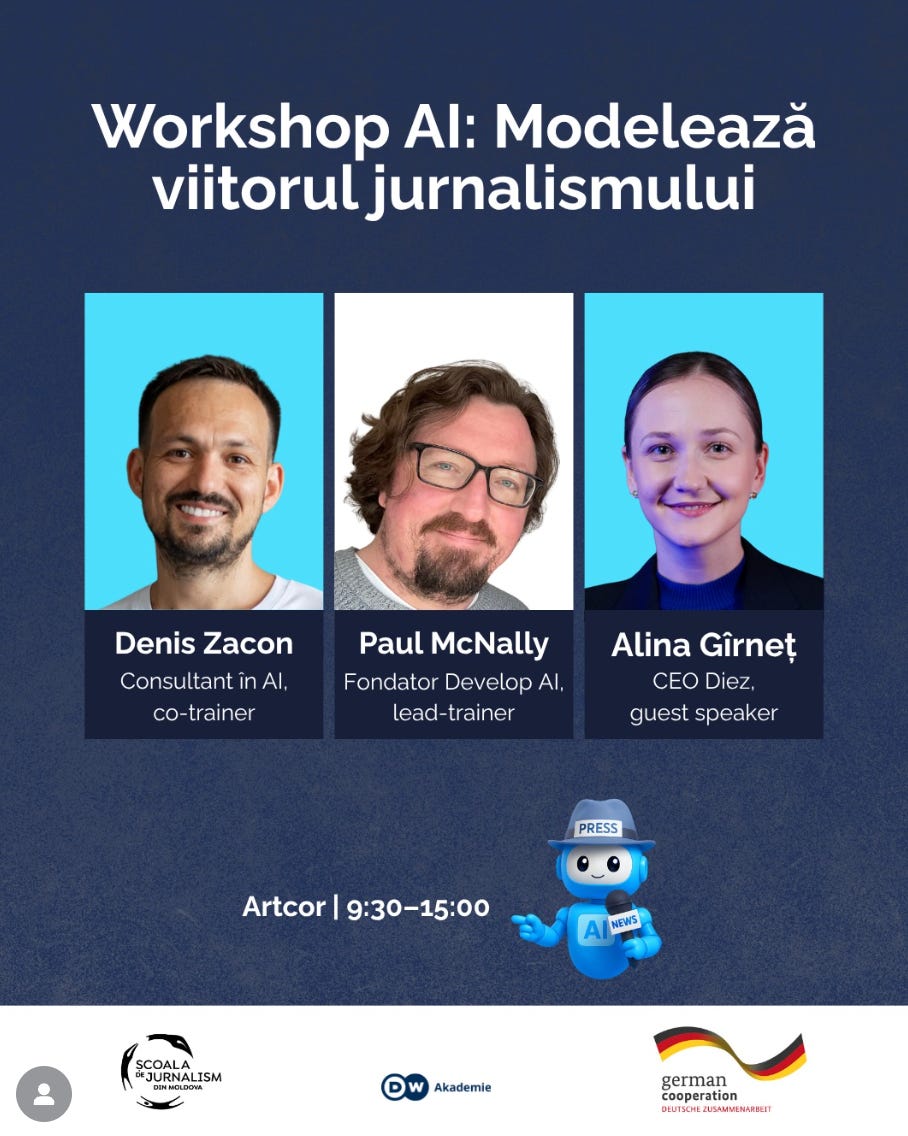 I was in Moldova earlier this year speaking on AI and podcasting at their annual Podcast Fest and giving a workshop to a range of newsrooms from around the country on AI implementation. Thank you to DW Akademie for making this happen. Podcasting is largely video focused in the region and AI avatars, created with platforms like HeyGen, are becoming increasingly common.