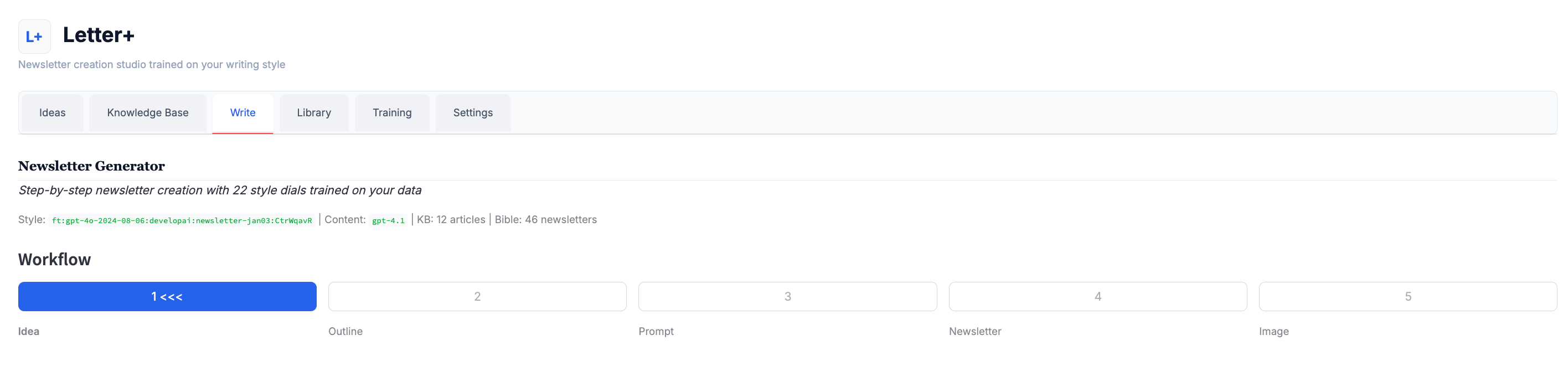 I also added a feature so the system is constantly trained on edits you make (even small tweaks to headlines) and a section where you can input the stats of how the generated letters do out in the world (so it can adjust what it generates going forward).